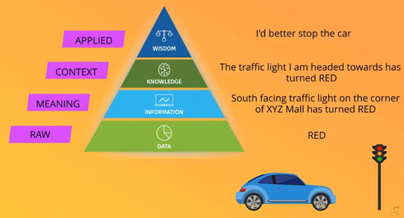At the base of the pyramid sits data, unprocessed, context-free, and often overwhelming.