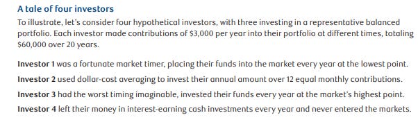 But the moment you start believing you can improve your results by “waiting for the right time,” you’ve introduced a problem that’s very hard to see in real time—and very expensive over the long run.